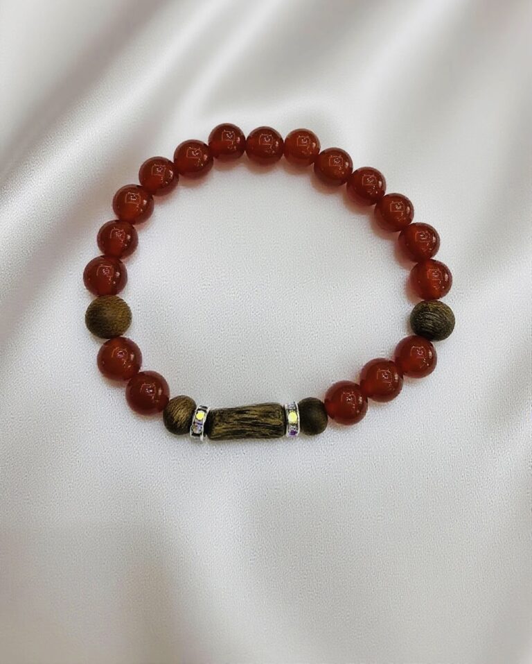 Strawberry Crystals Beads Bracelet with Agarwood Beads and Baroque Pearl