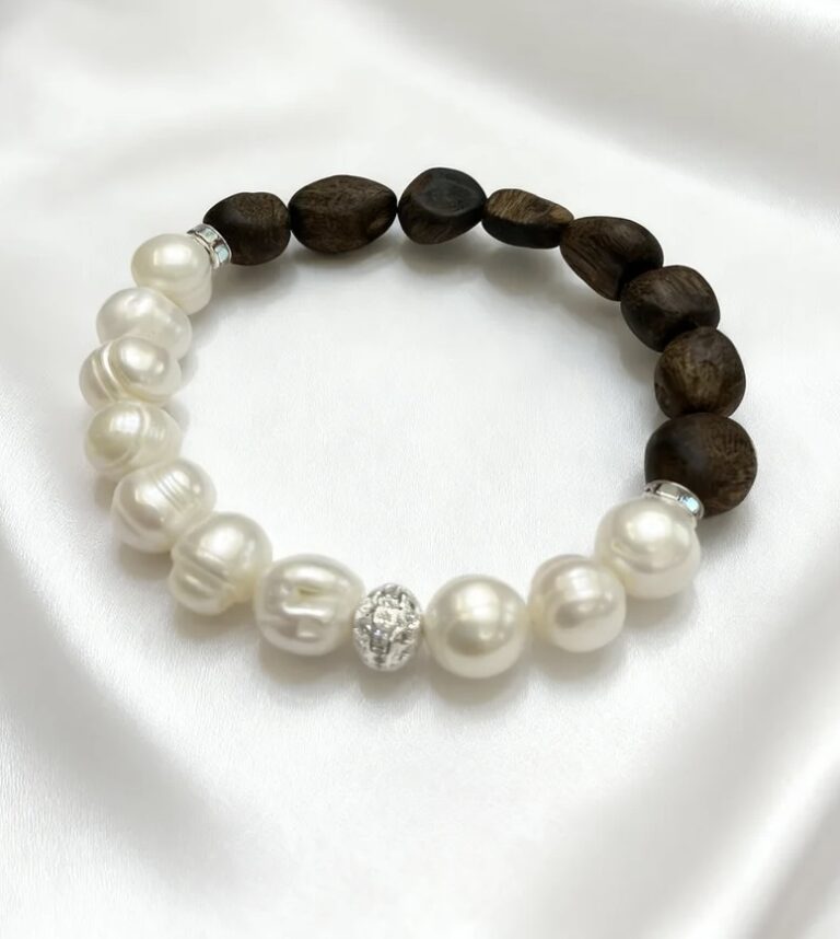 Waterdrop-shaped Bead Kynam Agarwood Bracelet with Natural Pearls