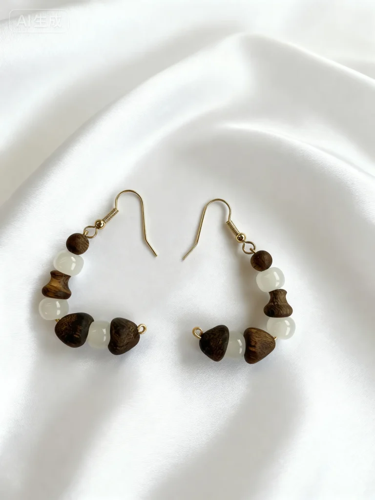 Kynam 0.5cm Oud Beads Necklace+Crystals-Ink Wash Painting