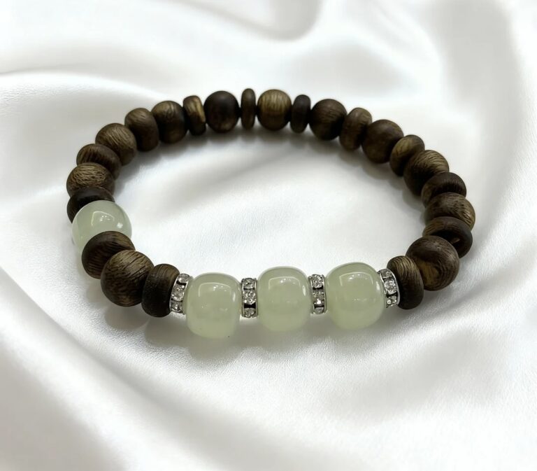 Kynam Agarwood Beads with Tiger Eye Crystal and Mammoth Ivory