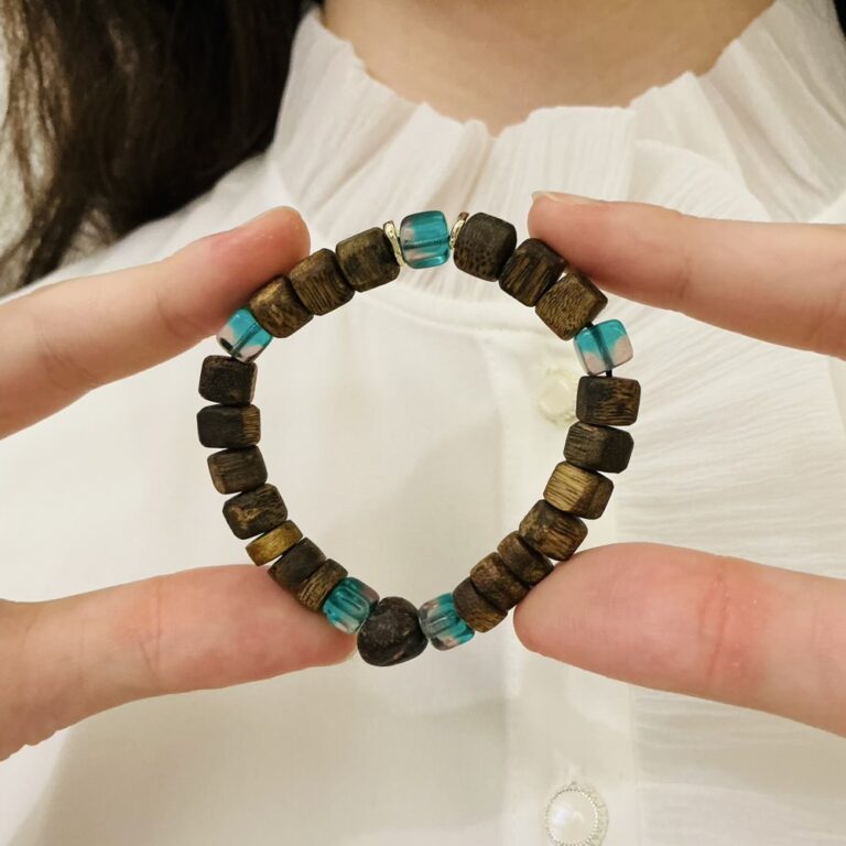 Kynam Oud Cube Beads with Blue Pink Cube Cystals