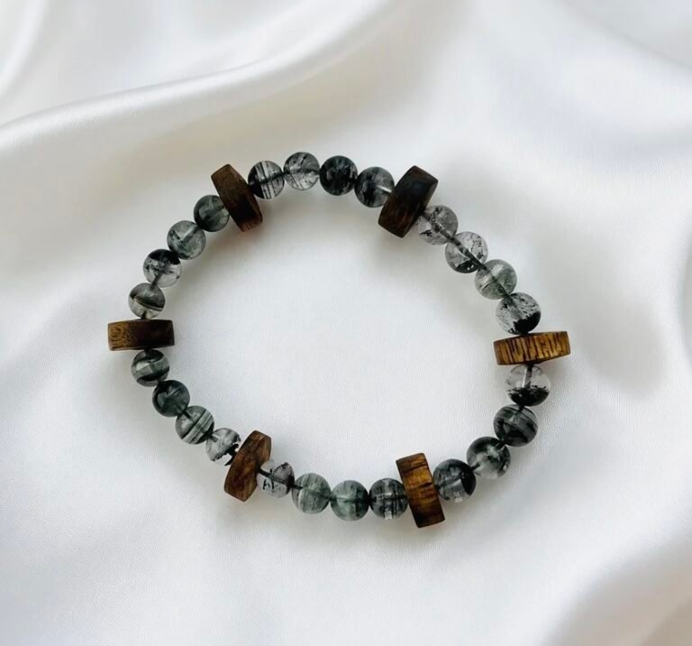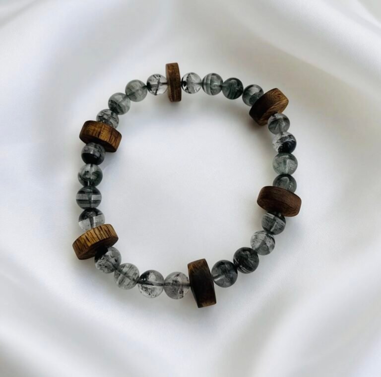 Kynam Agarwood Bamboo & Tourmalinated Quartz Bracelet
