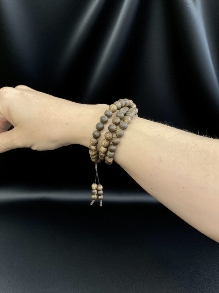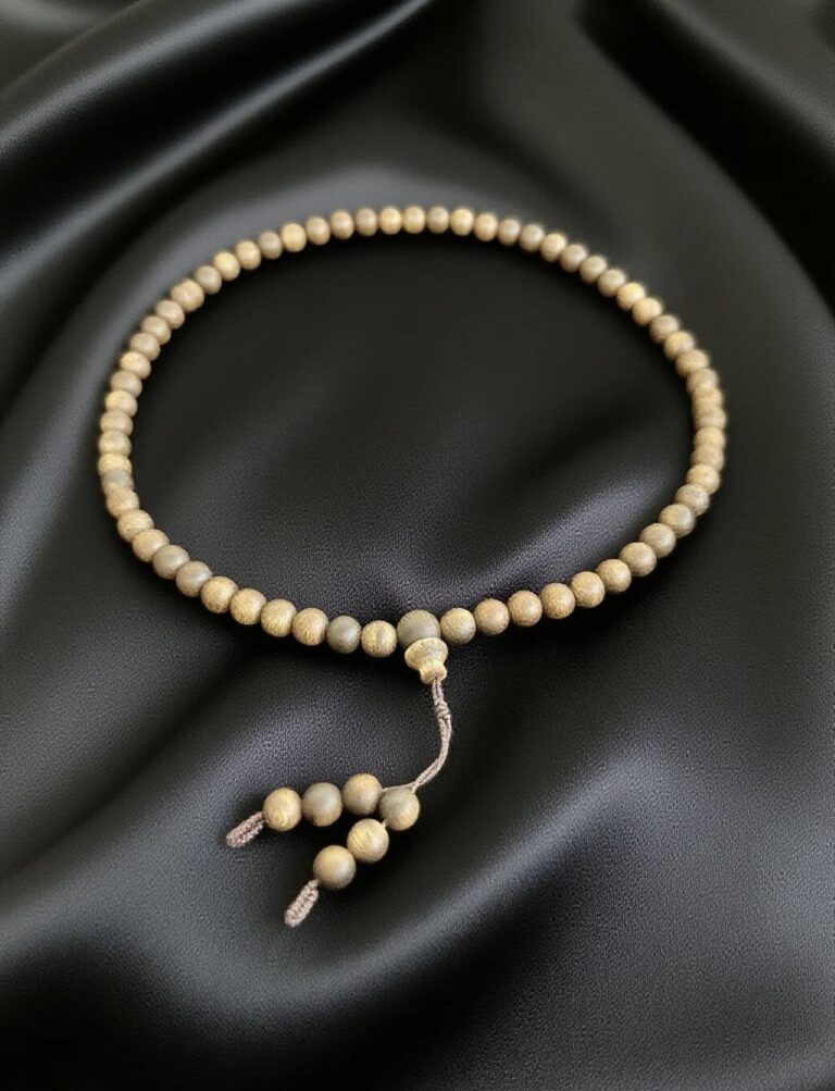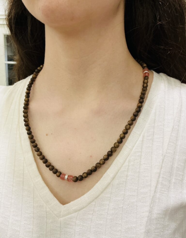 Kynam Oud Barrel Beads Necklace and Bracelet with Black Gold Crystal