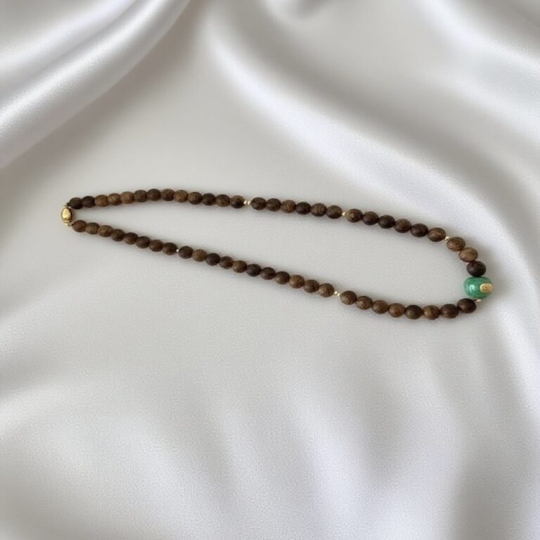 Kynam Oud Beads Necklace and Bracelet with Baroque Pearl Pendant
