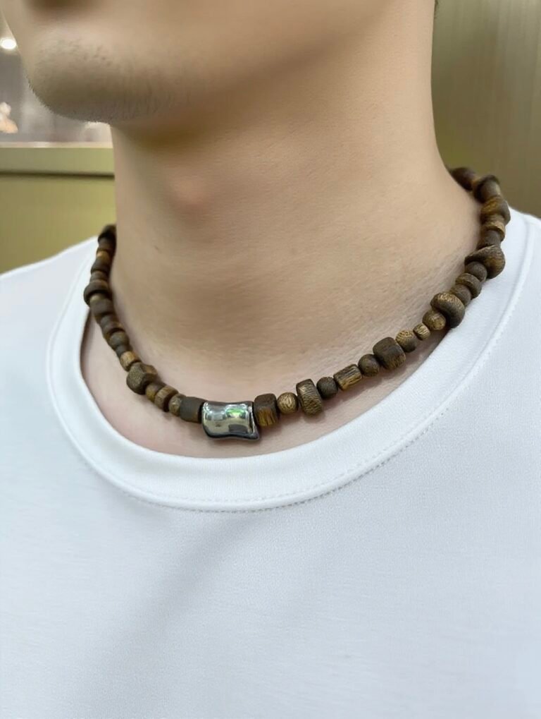Kynam Oud Round Beads Necklace with Gold Plated Branch
