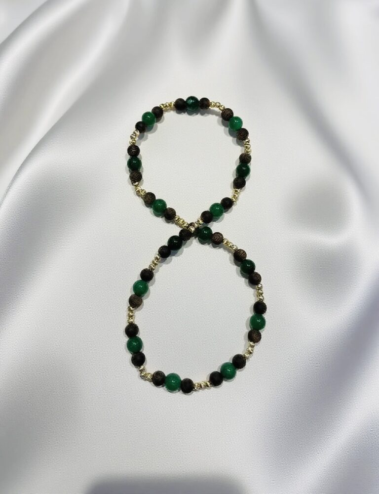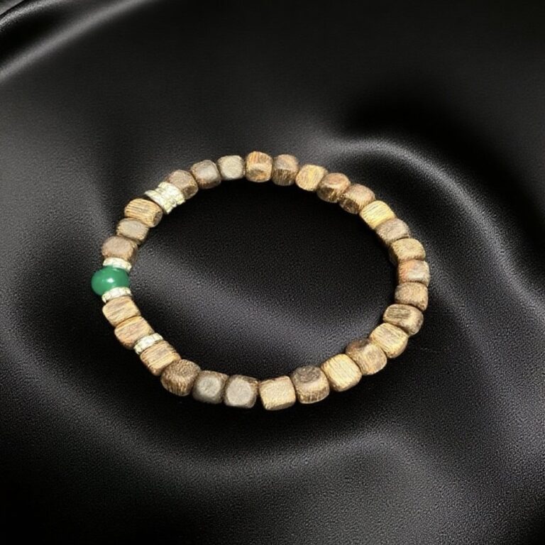 Green Hair Crystals Beads Bracelet with Agarwood Square Beads