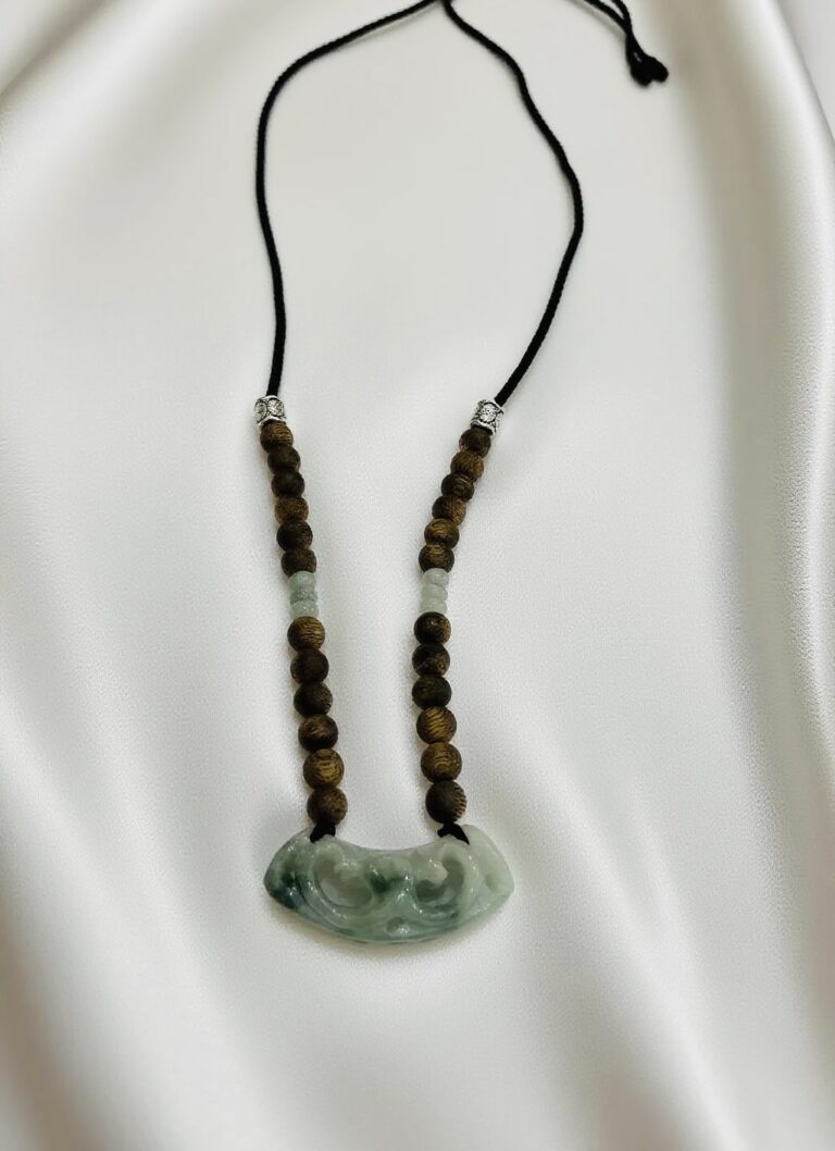 Dragon Scale Cord Agarwood Neckalce with Jadeite “As You Wish” Pendant