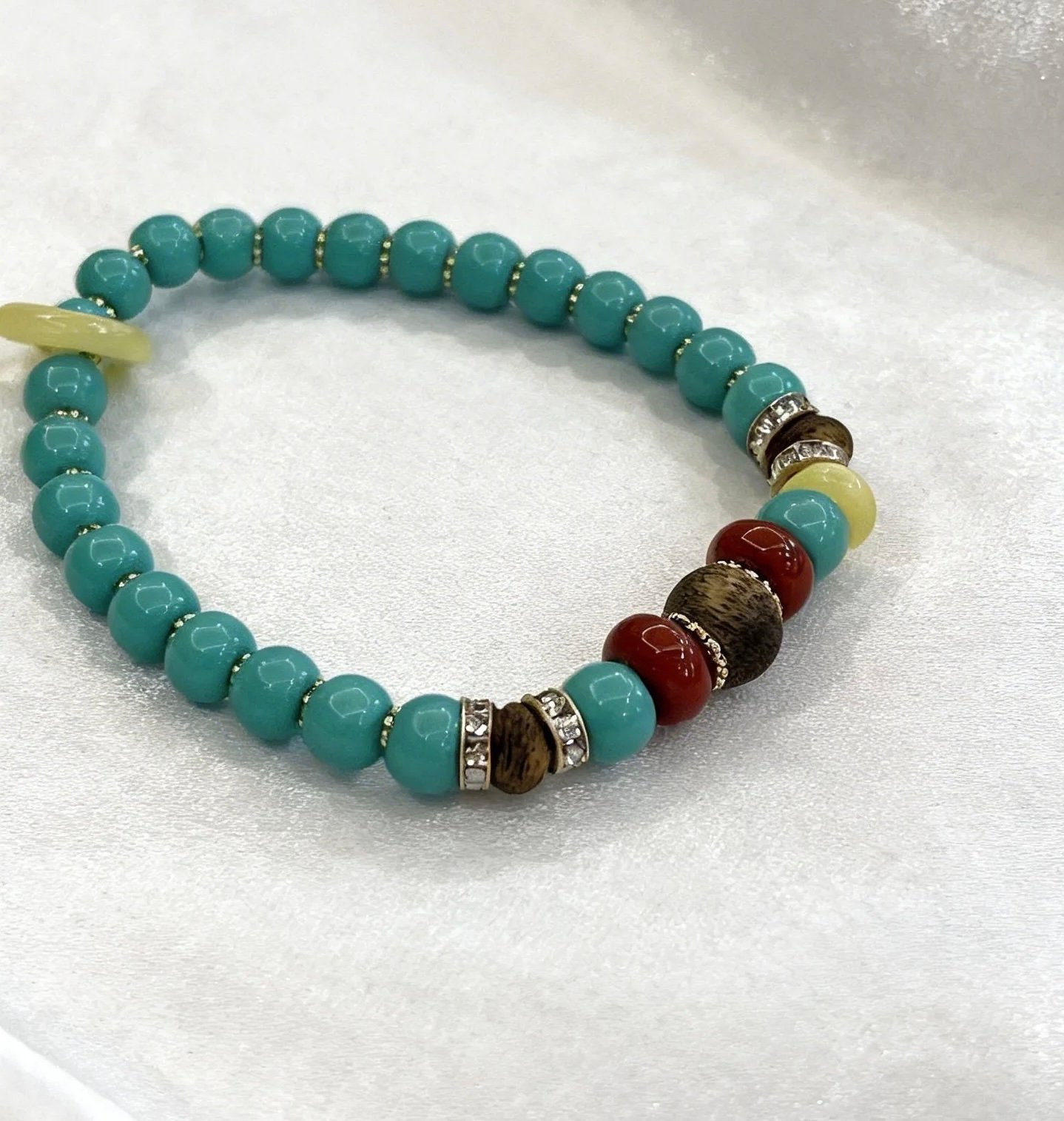 More than just an accessory, this bracelet is a wearable piece of nature’s art. The delicate, lingering fragrance of Kynam Agarwood infuses every wear with a sense of calm, while the natural energy of turquoise and amber brings balance and positivity to your daily life. Perfect for casual outings, spiritual practices, or everyday elegance, it’s a must-have for lovers of boho-chic style and natural luxury.