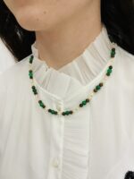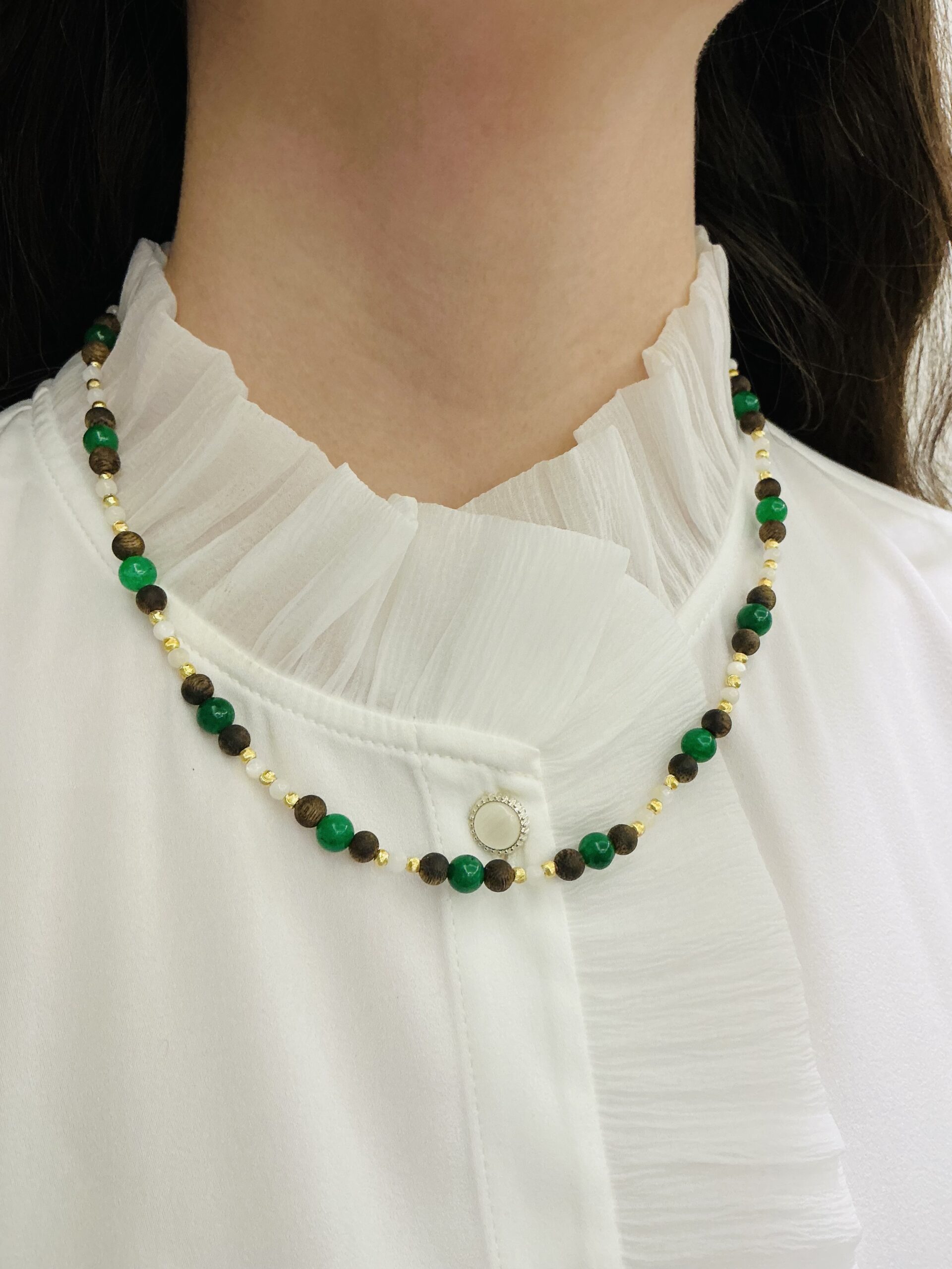 This two-strand stretch bracelet features smooth green chalcedony beads paired with tiny gold beads and scattered agarwood rounds, blending elegance with comfort. Green chalcedony symbolizes heartfelt harmony, emotional balance, and abundance—its soft green hue nurturing inner peace and positive connections. The golden beads embody prosperity, joy, and divine light, amplifying good fortune in daily life. Agarwood, with its subtle calming aroma, brings spiritual tranquility, protection, and clarity, while the two-strand design represents doubled blessings and enduring harmony. Perfect for everyday wear, this bracelet weaves natural serenity, auspicious energy, and understated luxury into a meaningful accessory.