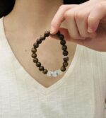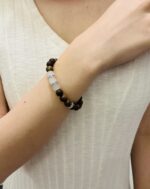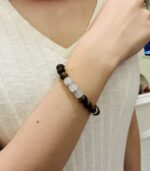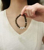 This bracelet features 0.8cm kynam agarwood beads as the main body, paired with white agate barrel beads named “Moonlit Haze”. It boasts an elegant and gentle overall style, where the mellow texture of eaglewood blends with the translucent and hazy appearance of white agate.