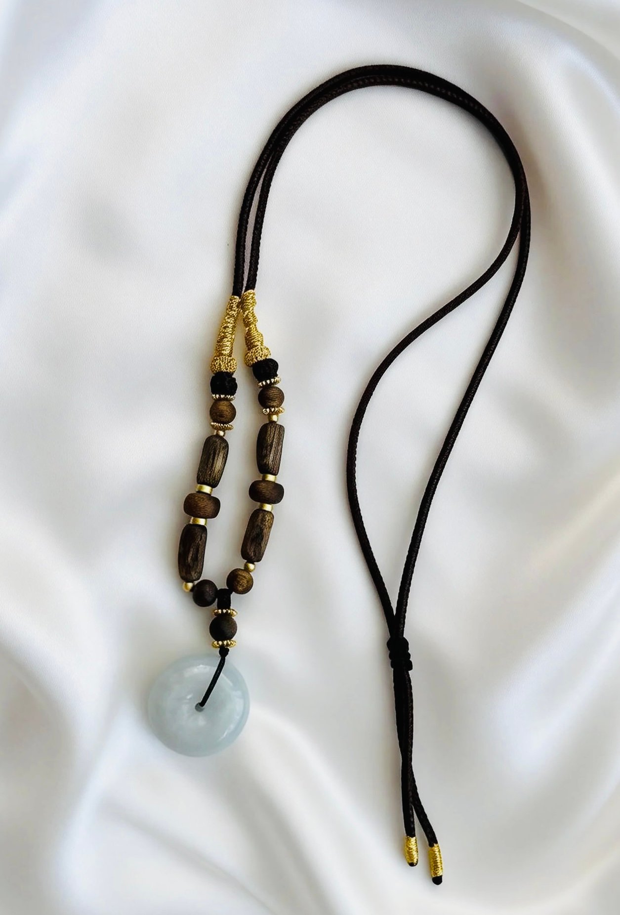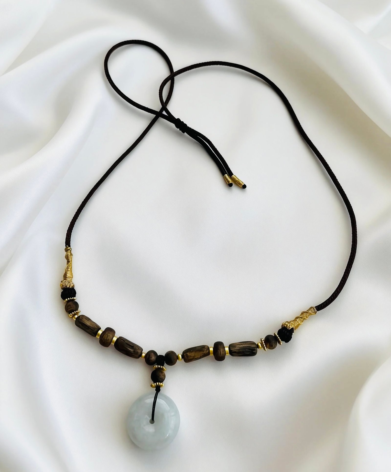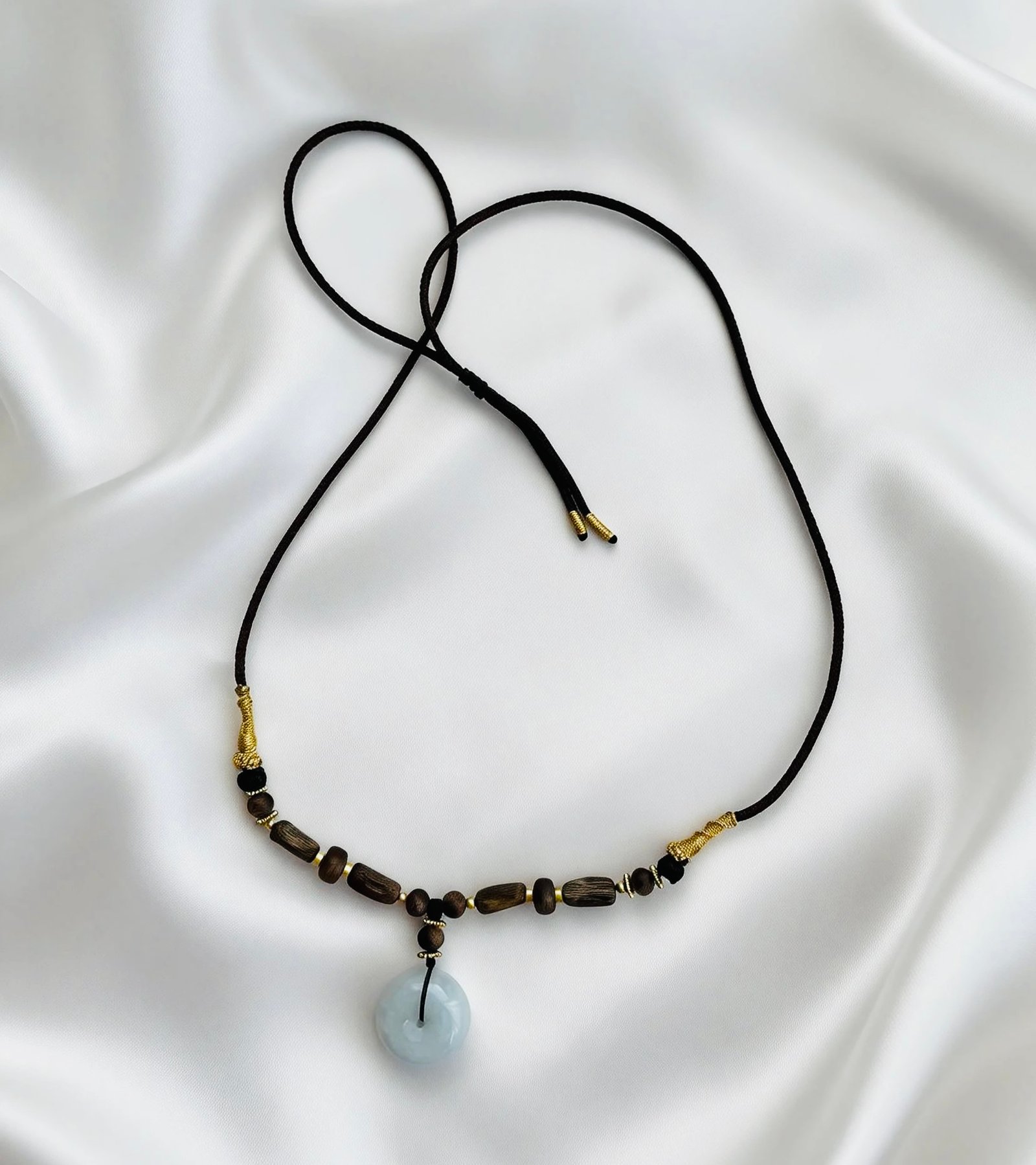 Kynam Agarwood & Jadeite Safety Buckle Necklace