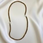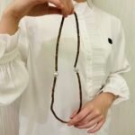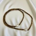 This elegant piece combines practical ingenuity, serving as both a necklace and a bracelet. As a necklace, agarwood barrel beads form a chain with a baroque pearl pendant that elongates the neckline and creates a visual focal point where the pearl’s softness contrasts with the wood’s solidity. Worn with a simple blouse or dress, it instantly adds an intellectual aura. As a bracelet, the adjustable chain wraps around the wrist, with the agarwood beads resting warmly and the pearl pendant delicately swaying, adding refined elegance without bulk. Shortened: This versatile piece can be worn as a necklace or bracelet. As a necklace, agarwood beads and a baroque pearl pendant elongate the neckline and add sophistication. As a bracelet, it wraps comfortably around the wrist, combining pearly shine and wood tones for subtle elegance. Reason: The revision improves clarity and flow while preserving the original meaning. The shortened version condenses the description to highlight key features and versatility without unnecessary detail.