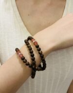 The Kynam agarwood bracelet-necklace combo, with its smooth texture in a calm brown hue, serves as the most gentle backdrop of winter. When inlaid with icy-translucent, moist red agate (nanhong), that vivid red comes to life—just like the first snowflakes falling softly on cherry branches, where pure white snowflakes gently cover the bright red fruits. Cold and warmth collide, simplicity and passion blend. Every time you raise your hand, it’s like wearing the most touching frame of winter scenery quietly on yourself.