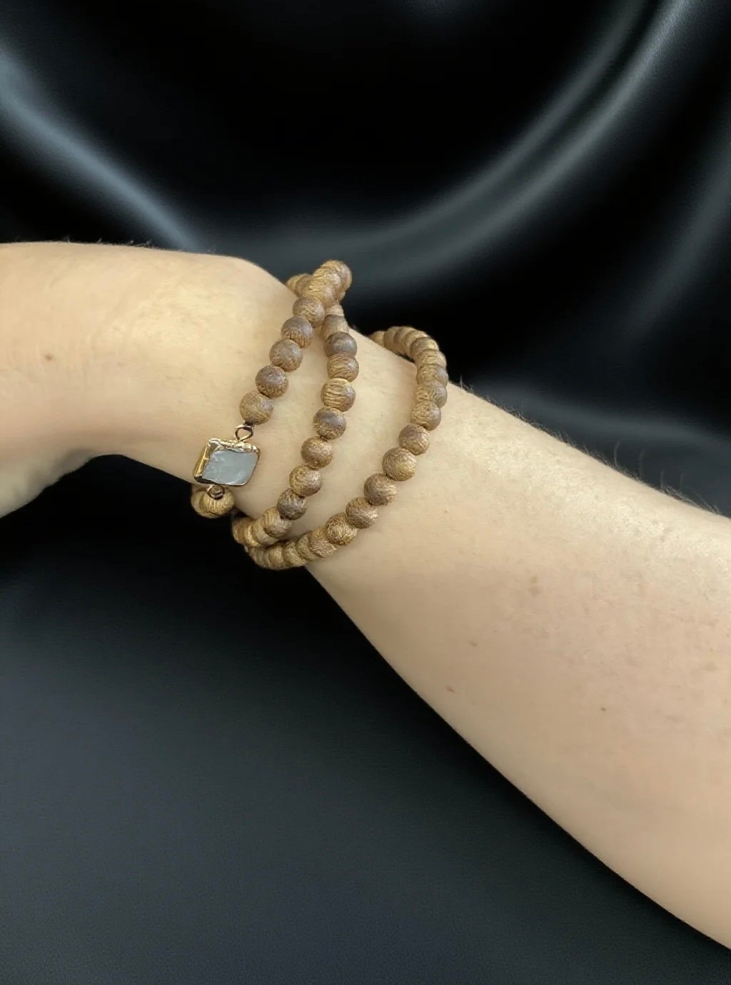 The 0.6cm agarwood bead necklace, which can be casually wrapped around the wrist to become a bracelet, its flexible transformation is just like the wisdom to cope with changes calmly in life. The mellow fragrance of wood lingers around, which is a stable force precipitated by years, guarding the clarity and firmness of the heart.
