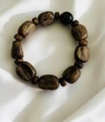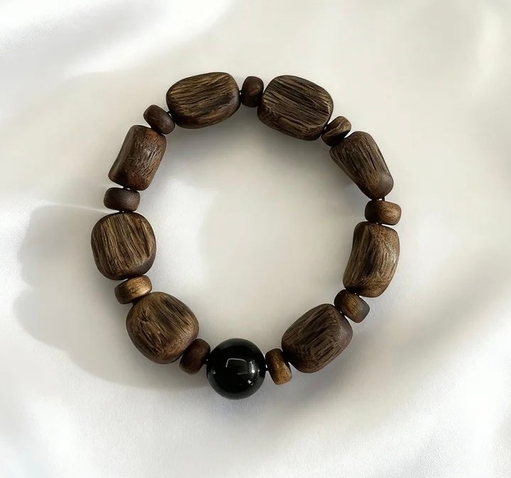 This rectangular Kynam Agarwood bracelet accented with obsidian is a masterpiece crafted for the discerning modern man, blending understated luxury with sophisticated business style. The natural Kynam Agarwood beads, shaped into sleek rectangular forms, exude an air of refined elegance and quiet confidence—their subtle, woody aroma a timeless symbol of calm and poise in the fast-paced business world. The obsidian accent serves as a striking focal point, not only adding a touch of bold contrast but also carrying the ancient symbolism of protection and strength, shielding the wearer from negative energies while grounding them in unwavering resolve. Designed for both formal business settings and polished daily wear, this bracelet is more than an accessory; it is a statement of masculine taste, merging Eastern spiritual heritage with contemporary business aesthetics to complement the ambitious man’s journey to success.