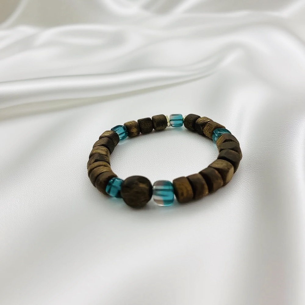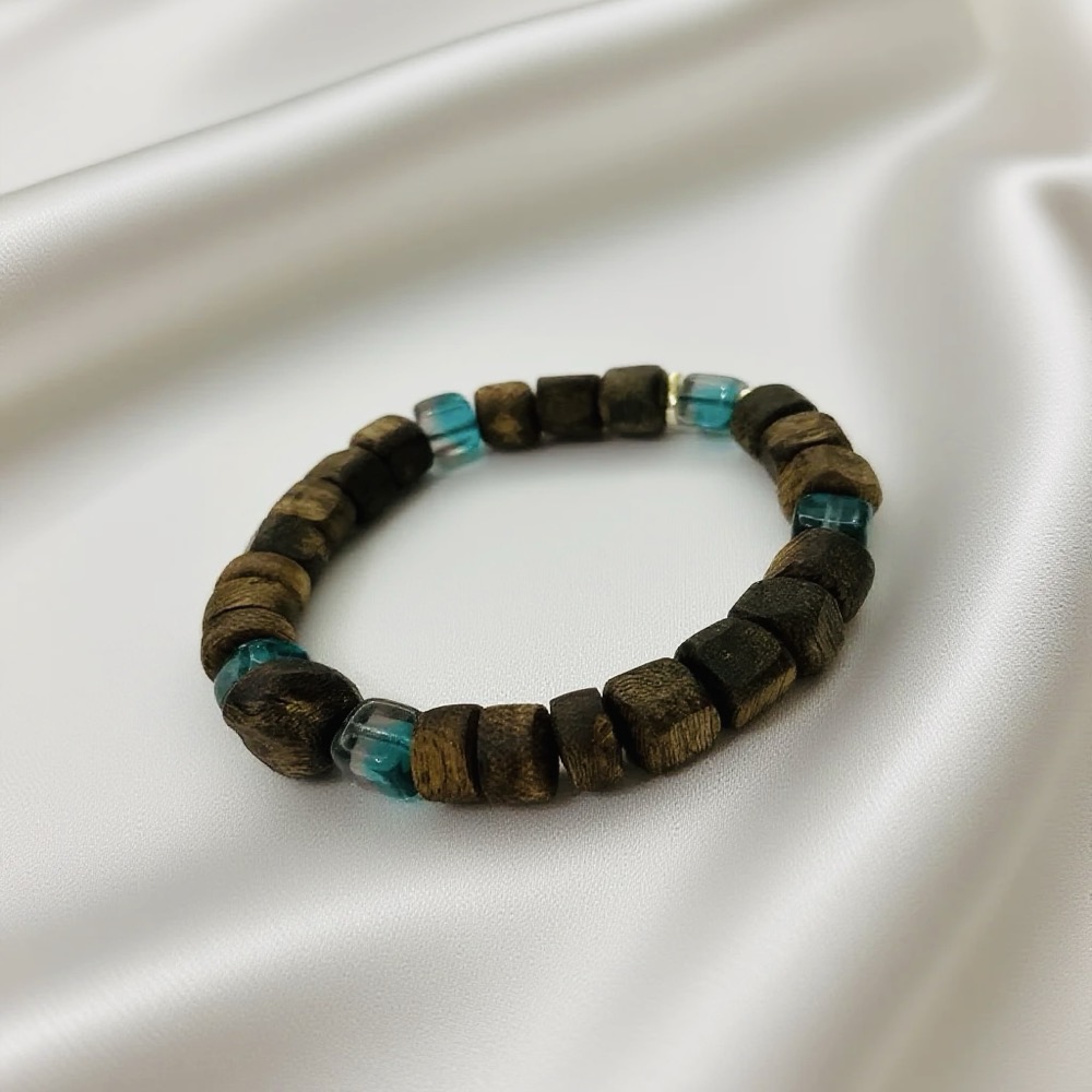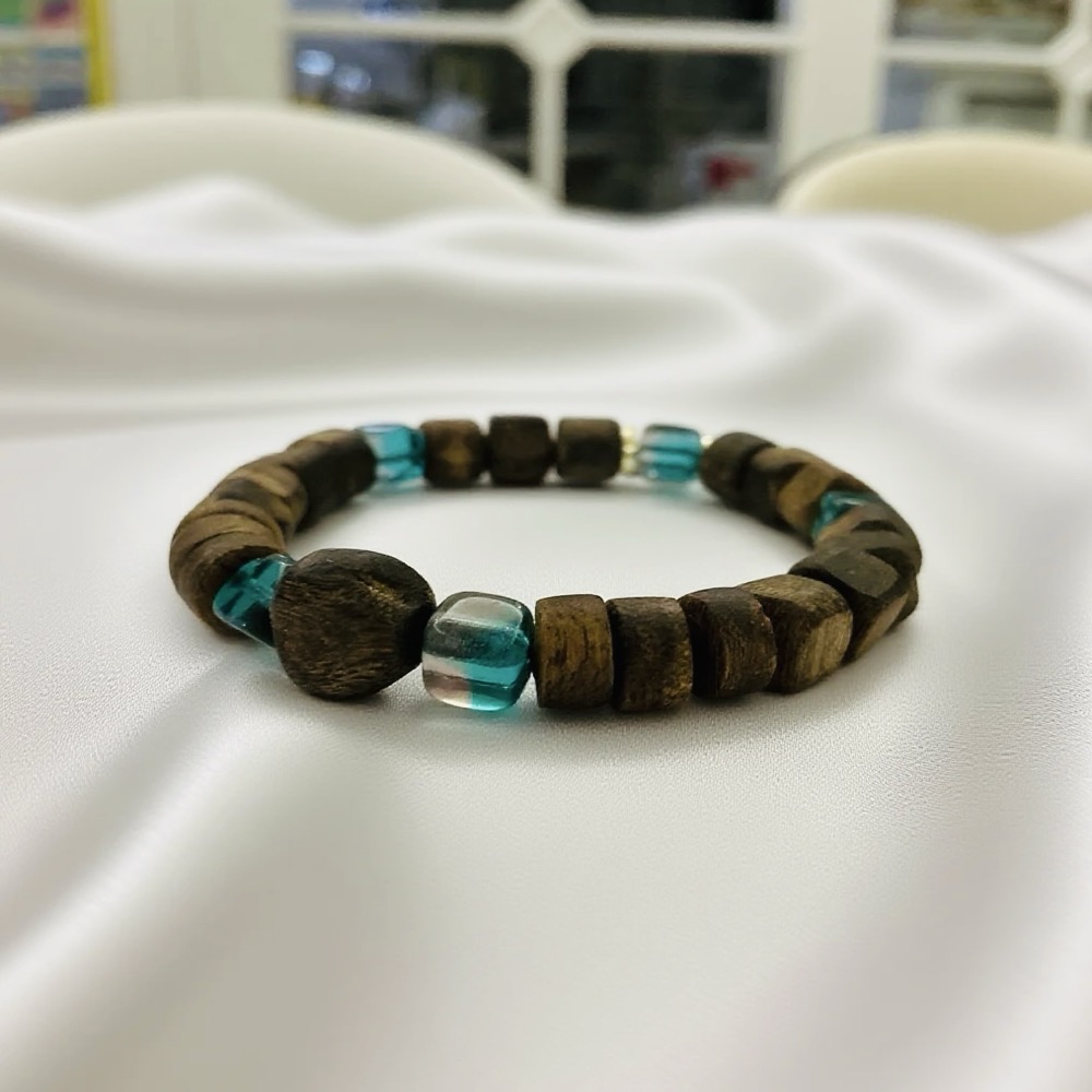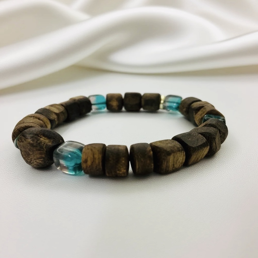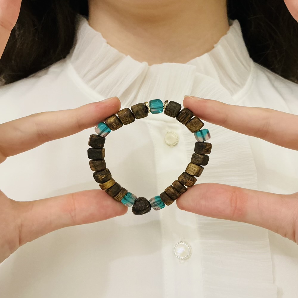 In the agarwood cube bead bracelet, agarwood symbolizes calmness and stability, carrying the beautiful expectation of calming the mind and safeguarding smoothness; the blue and pink cube beads are like a brilliant starry river, implying that life is full of sweetness and romance. The bracelet as a whole is not only a unique ornament for outfits, but also hides the wish for a warm and beautiful daily life.