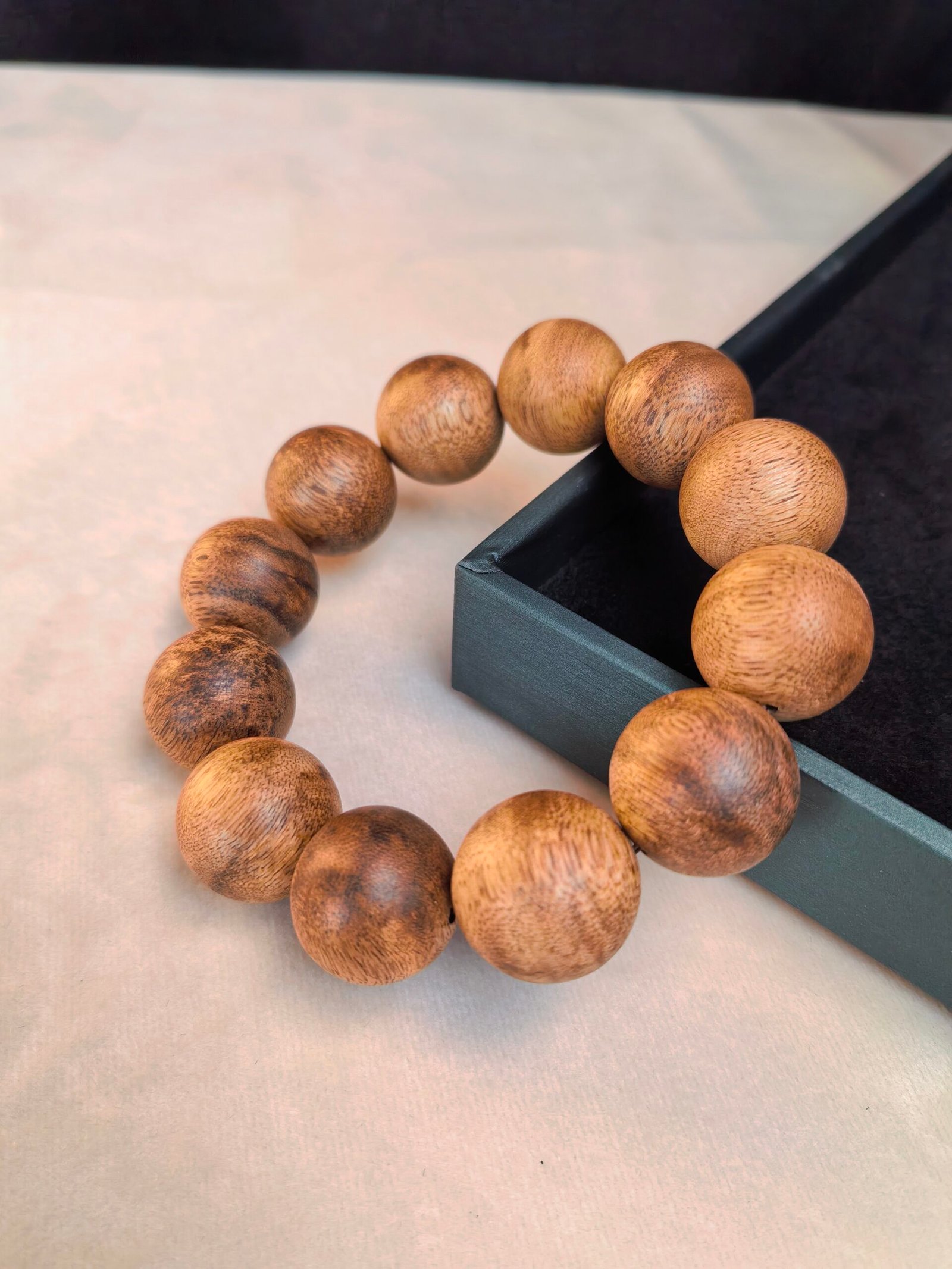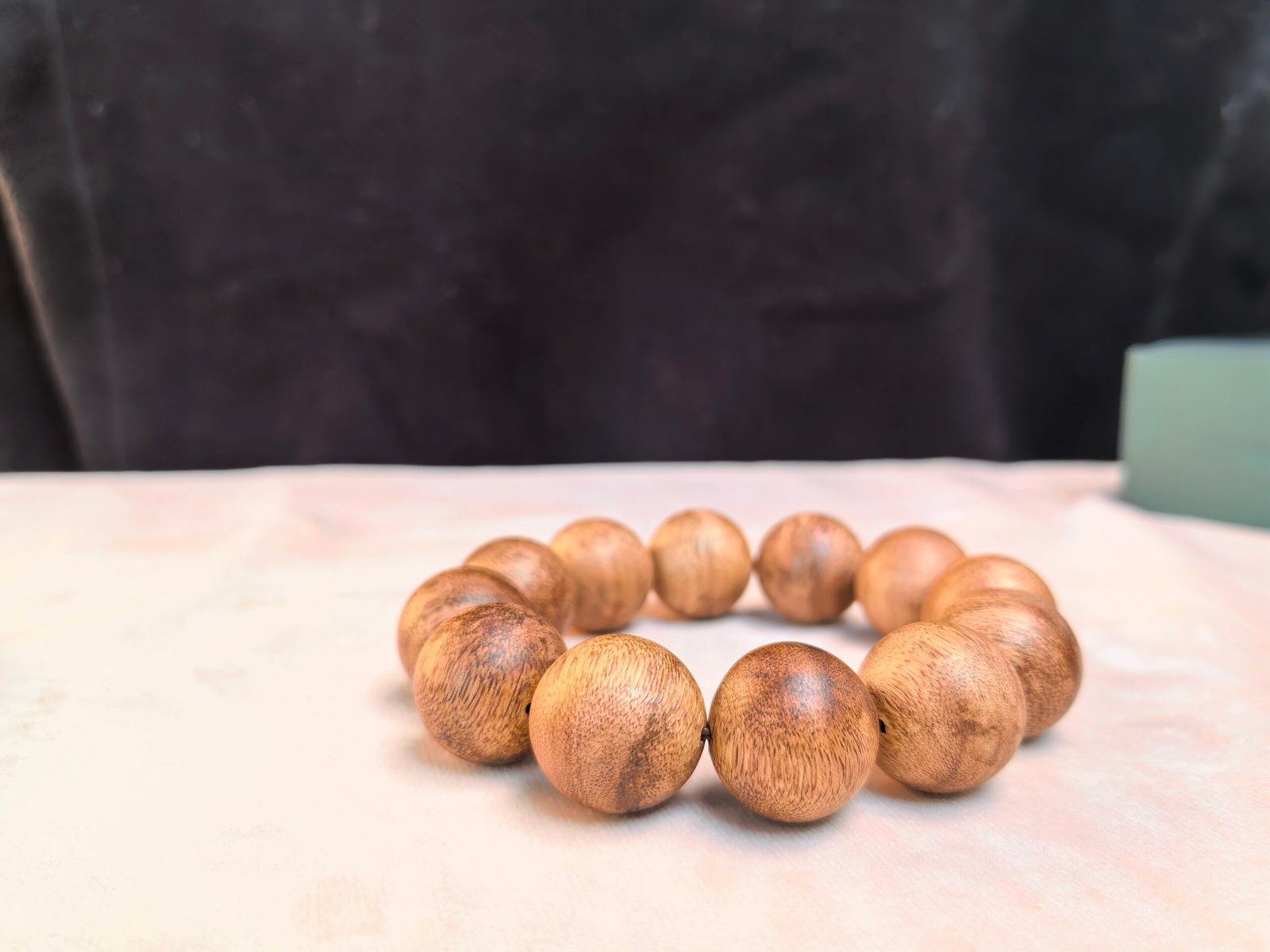 A 2.0cm agarwood beads bracelet is a quintessential accessory for men, where substantiality meets understated refinement in perfect balance. Each bead, with its generous 2.0cm diameter, sits comfortably on the wrist, exuding a robust presence that complements a man’s frame without veering into excess—its size speaks to confidence, a quiet assertion of taste rather than ostentation. The agarwood itself, with its rich, earthy grain and subtle, lingering aroma, adds layers of depth: the wood’s warm, woody scent, reminiscent of ancient forests and sunlit groves, carries a sense of grounding and wisdom, as if each bead holds the essence of time-honored calm. Run between the fingers, the beads feel smooth yet substantial, their rounded edges polished by craft yet retaining the organic texture of nature, making them ideal for both daily wear and moments of reflection. Whether paired with a crisp shirt or casual attire, this bracelet becomes more than an accessory—it’s a statement of poise, a tangible connection to nature’s quiet strength, and a reflection of a man’s appreciation for enduring quality and understated elegance.